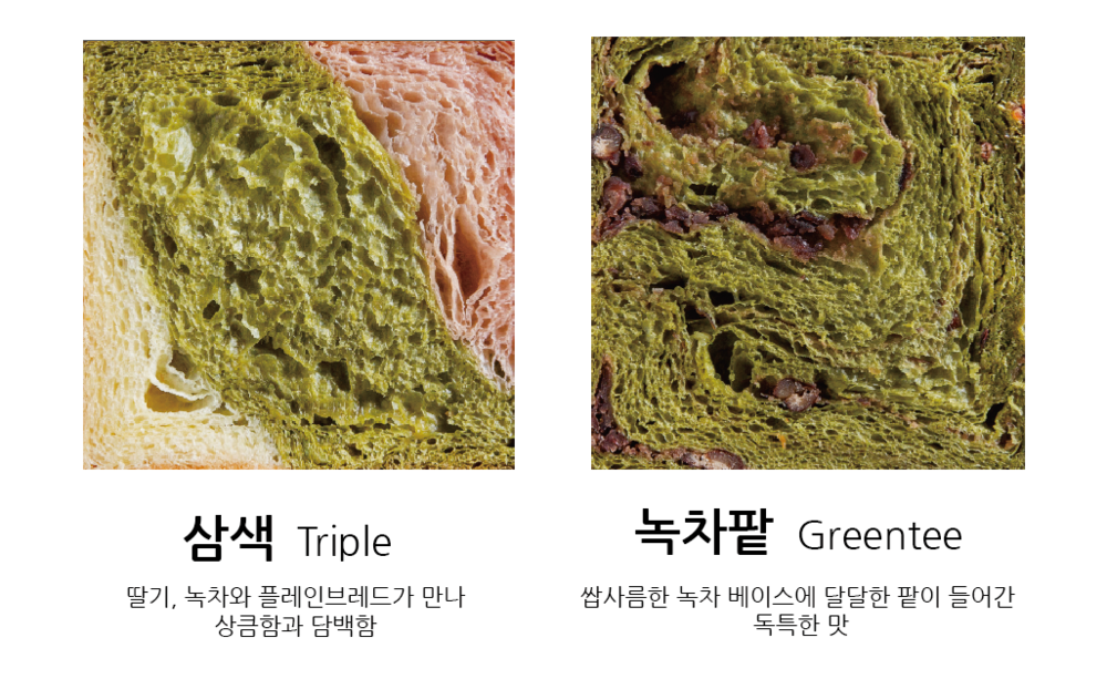 담백한 녹차 베이스에 고소한 팥이 들어간 건강한 빵으로,